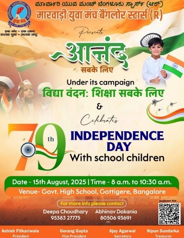 Marwari Yuva Manch, Bangalore Stars joyfully celebrated India’s 79th Independence Day today at the Government Secondary School, Gottigere, Bangalore. On this occasion, around 370 students of the school participated with great enthusiasm.