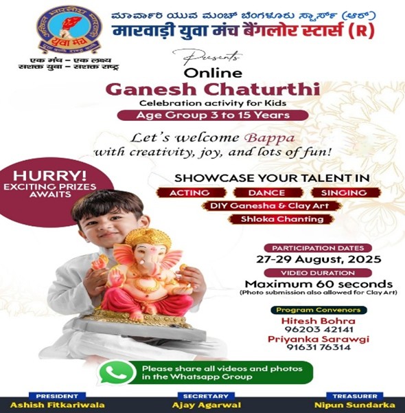 On the auspicious occasion of Ganesh Chaturthi, Marwari Yuva Manch, Bangalore Stars organized a memorable online cultural program for members’ children.